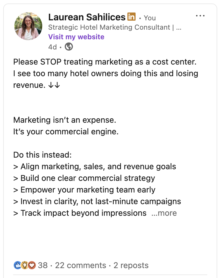 If marketing currently feels like a cost centre in your hotel, the question is not: